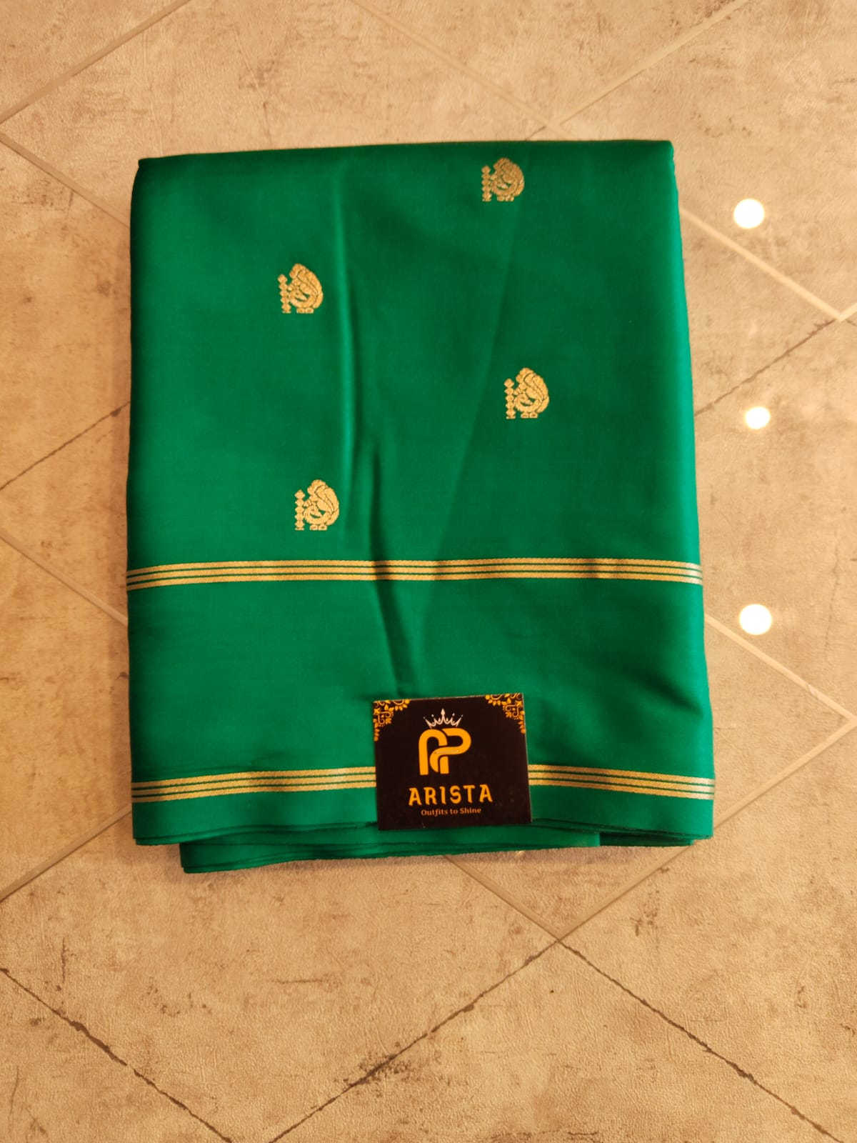 CREPE SILK Green & Golden Peacock Motifs Saree