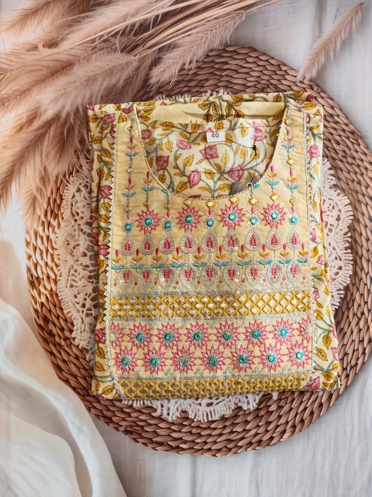 Cotton Floral Print and Embroidery Yellow