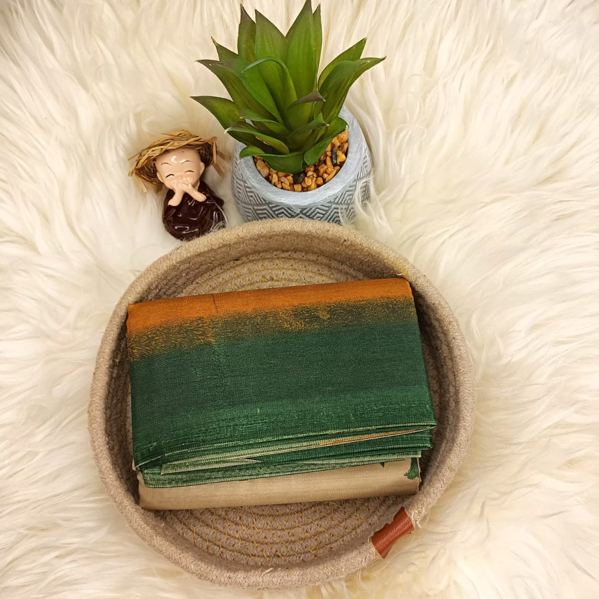 Crafted from eco-friendly banana stem fiber, this saree is ultra-lightweight, breathable, and incredibly easy to carry — it folds down to matchbox size, making it perfect for travel and daily use.