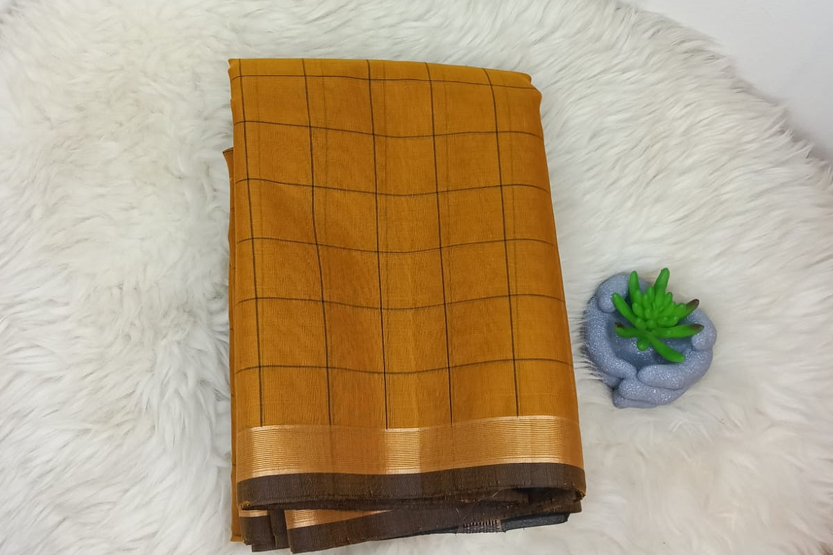 Add timeless elegance to your wardrobe with our Kora Silk Cotton Saree, beautifully woven with a classic checked pattern and finished with a rich traditional border. Made from a fine blend of silk and cotton, this saree offers a soft texture, breathable comfort, and graceful drape, making it perfect for all-day wear.