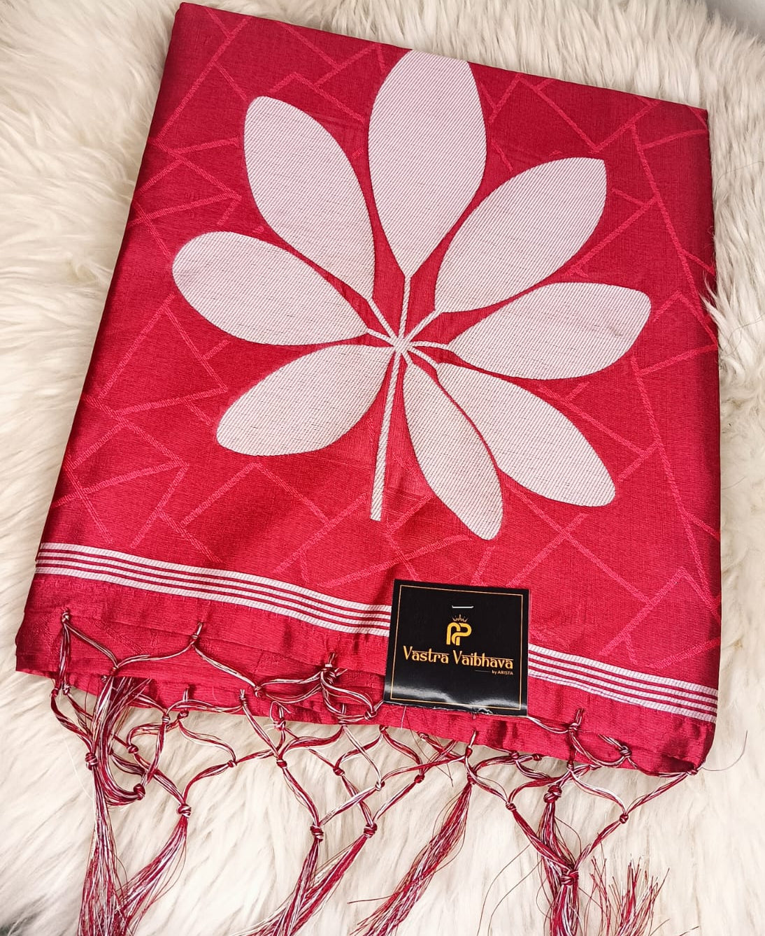 This Semi Chanderi saree in rich crimson red comes alive with a striking floral motif and a soft natural sheen. Light, airy, and beautifully draped, it’s perfect for festive days, traditional gatherings, and elegant celebrations—simple, vibrant, and effortlessly graceful.